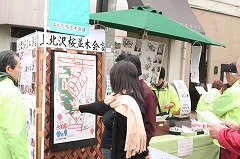 上記3枚のパネルを見ていただきました。上北沢プレイマップは、桜まつり会場の入り口に位置する関係で、あたかも上北沢全体の案内をしているようで、多くの方にご覧いただきました。