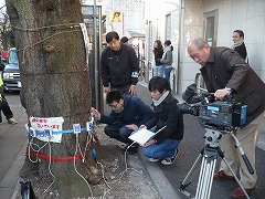 ●当日は、区の広報の方や桜並木会議のメンバーが見学しました。また、NHKが取材し、当日の12時からのニュースで、全国に報道されました。