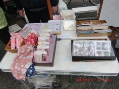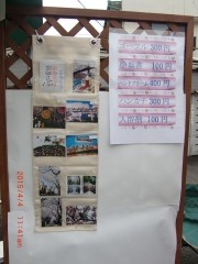 例年のものとして和菓子屋・川越屋さん(上北沢4丁目)のゴーフル、桜にちなんだグッズ(ハンドクリーム、ハンカチ等)と絵葉書です。