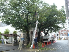 この日は、上北沢駅を中心に朝8時から禁煙キャンペーンの活動を行った後に伐採作業に取り掛かりました。