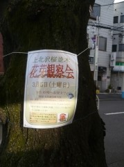 満開は3月30日前後と推測され、上北沢の桜まつりが開催される4月2,3日の開花状況は「どうにか散らないでもってくれる」のではないかとのことでした。