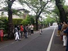 ・桜並木会議の会員は全体のまち歩きには参加しませんでしたが、「上北沢桜並木」がまち歩きの一つの目的地になっていたため、参加者への説明・解説に桜並木会議メンバー4人が担当しました
