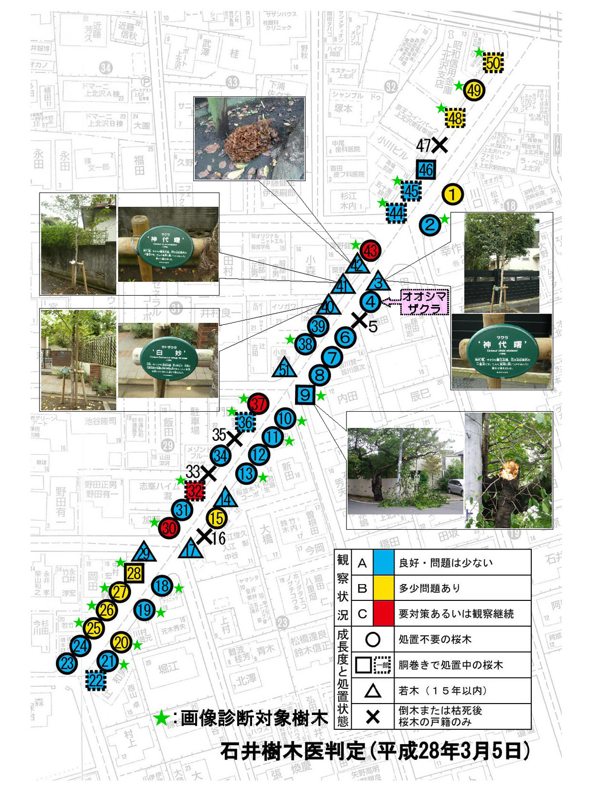 観察結果については後日報告させていただきますが、個々の評価である「ABCランク」の変化は、「A」から「B」に変わった桜が2本ありました。