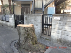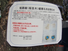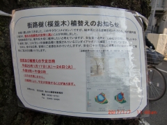 2017年01月17日(火)から20日(金)に、区烏山公園管理事務所により、桜並木の3本の桜が伐採されました。