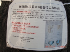 下記の画像は、剪定を行う11本に掛けてあるお知らせです。