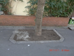 桜並木の植え桝は、雨や風で土が無くなってきています。