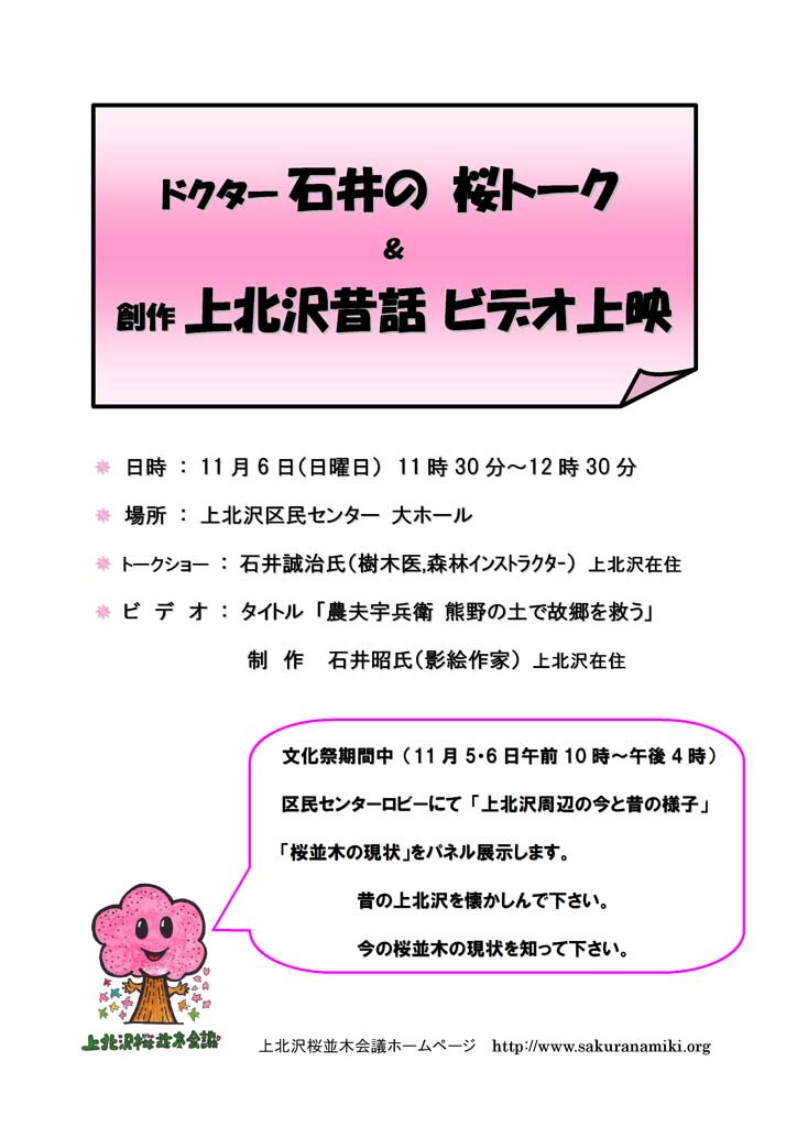 今年も、なるべく多くの人が参加して、上北沢桜並木会議の力になって下さい。