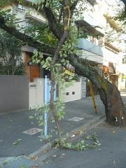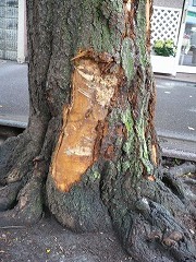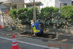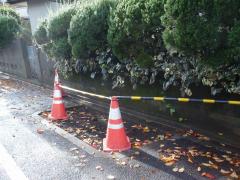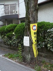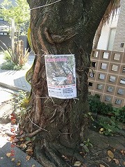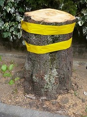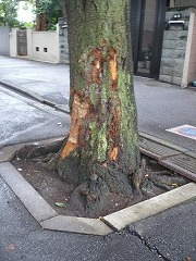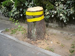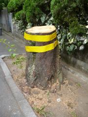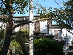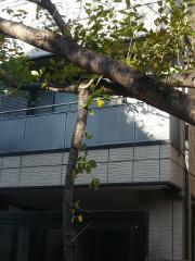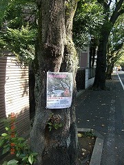 桜の木の枝に建築資材運搬用の車がぶつかり、4本の桜木が傷つきました(2011年10月27日)。