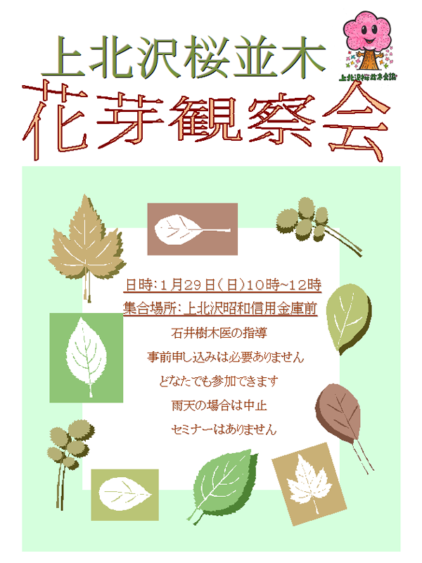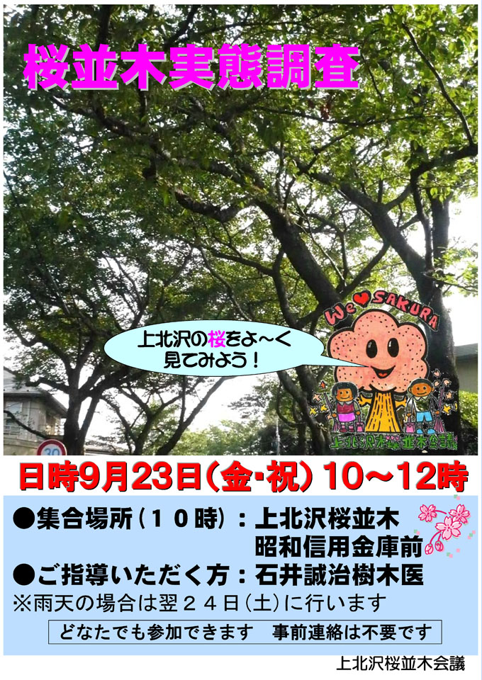 ・参加ご希望の方は、上北沢桜並木会議にメールをしていただくか、事務局員をご存知であればその人に伝えてください