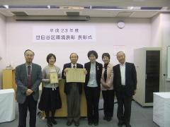 「平成23年度世田谷区環境表彰」の表彰式(10月29日)が行われ、上北沢桜並木会議は「環境美化部門」で表彰されました。