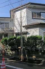 植樹された桜木の高さは、2階の家と同じくらいで、約6mくらいです。