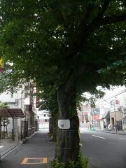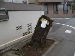 区のお知らせが、伐採する木に掲示されています。