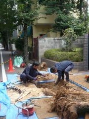 7月13日(土)に何時も上北沢の桜並木を管理している造園業者である「上仁」さんによって伐採作業(No16、47)が行われました。