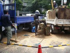 川瀬さんのお話では、これくらいの大きさの桜ですと、抜根時間は半日はかかるということでしたが、両方とも1時間以内で抜けたようです。
