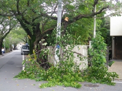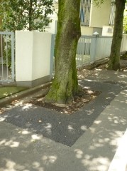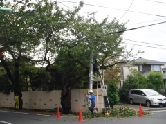 9月21日11時40分ごろ、No9(踏切から2ブロック目、南東側の角)の桜の枝に引越し用のトラックがぶつかり、枝折れがありました。