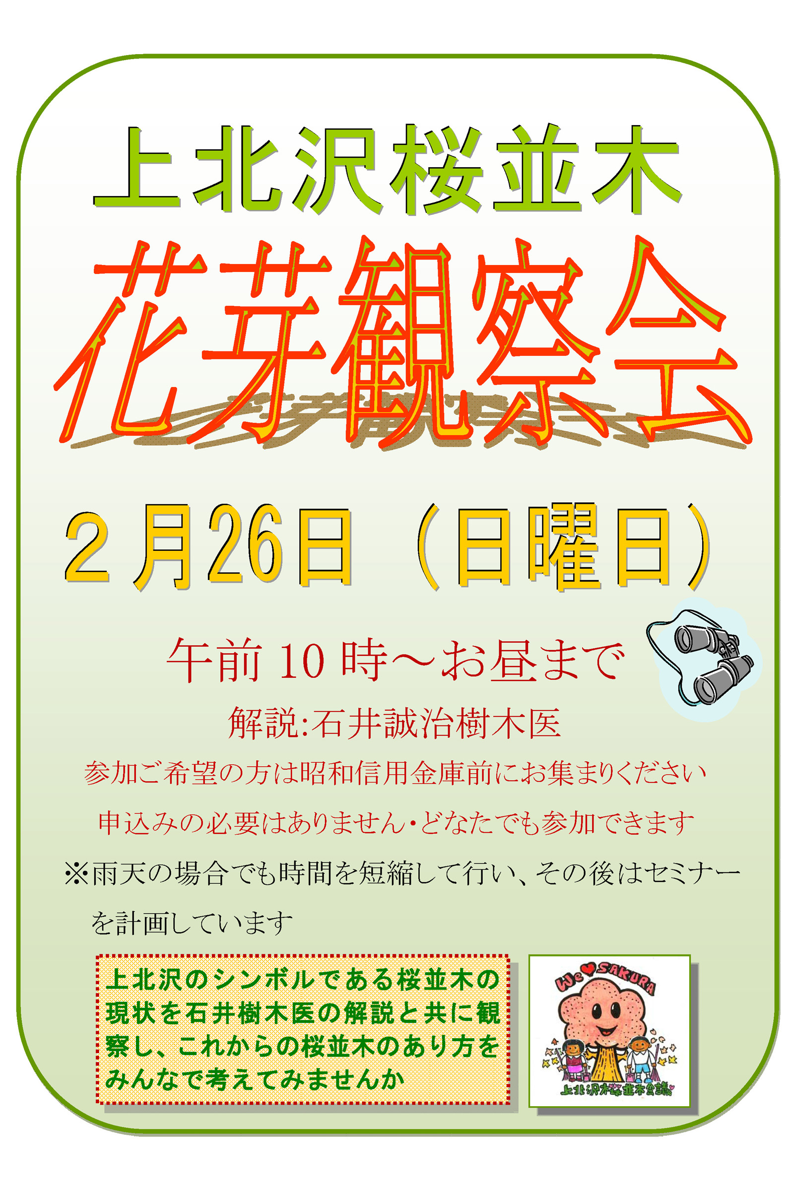 集合場所は昭和信用金庫車庫あるいは桜並木です。
