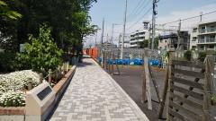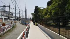 写真:八幡山駅側から見た歩道。左側は旧歩道、右側が新たに設置された歩道