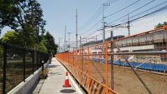 松沢病院の北側にある道路は、京王線の連続立体化事業にあわせて南側に移動する工事を行っています。