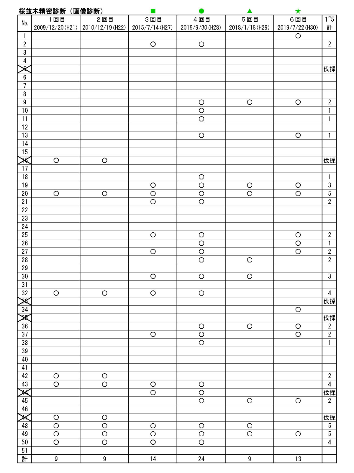 ぺージ「桜並木の現状」の「■診断結果(最新)」