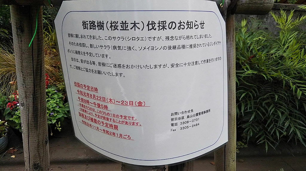 区、烏山公園管理事務所から、以下の予定で伐根と植え替えを行うとの連絡がありました。