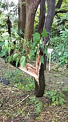 写真中・右:将軍池公園内の折れた木
