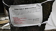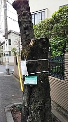 新たに伐採し植え替える桜には、区が「お知らせ」を掲示しています