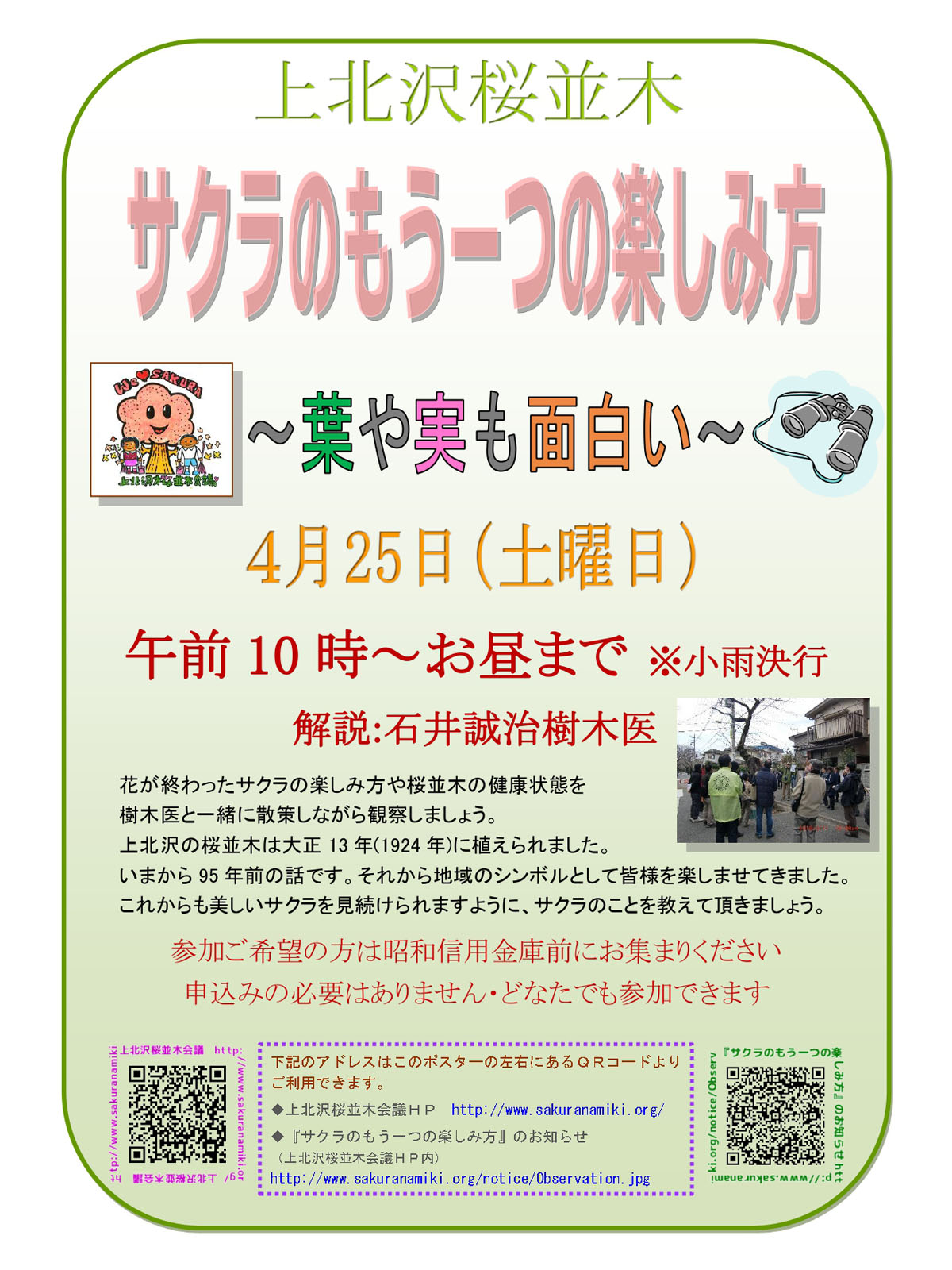 解説は上北沢に在住して、この桜並木を毎年見て木々の成長を見守っていただいている石井誠治樹木医です。