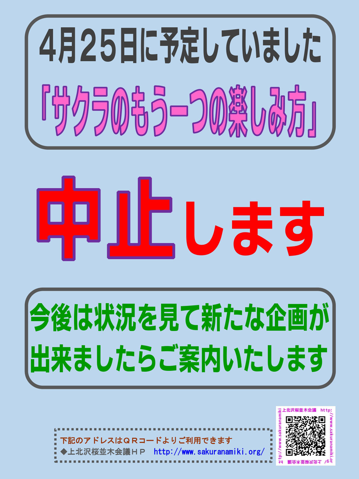 ●「サクラのもう一つの楽しみ方」の開催(中止になりました)
